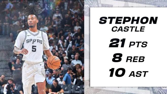 文班亚马是马刺的未来,卡斯尔也是。当文班亚马被包夹时,卡斯尔能持球突破。当卡斯尔被放空时,他能投进三分。当两人都在场时,马刺的进攻像开了挂。